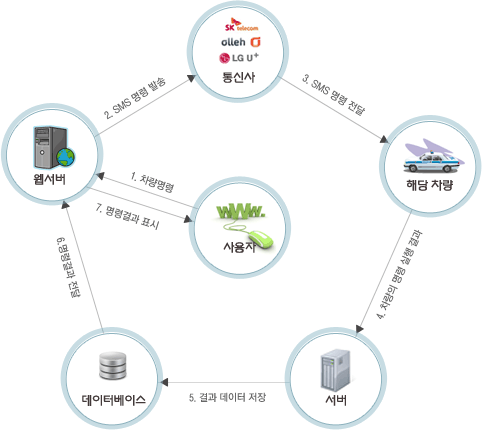 - 5. 차량 단말기에서 차량의 명령 실행 결과 및 상태 확인 후 서버로 전송